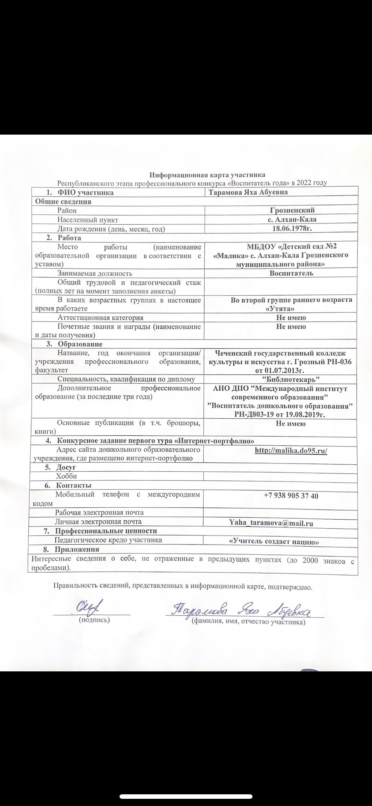 Информационная карта участника